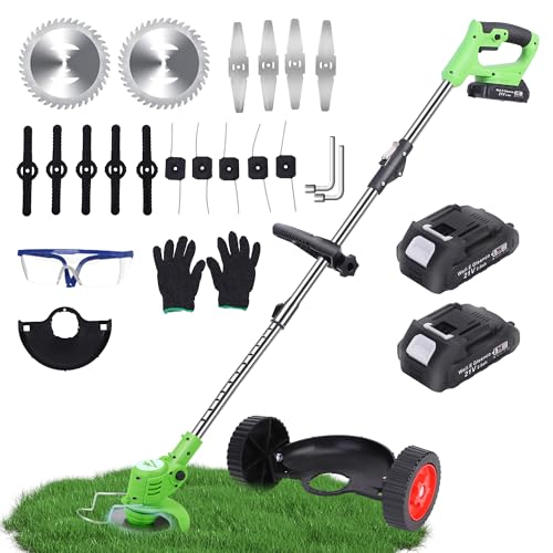 Amazon网上销售,现$22.99,会员或订单满$35则包邮。[包装包含]除草机、3种刀片(塑料、金属、锯片)、2块21V 2Ah锂电池。(注意:包装内不含美国标准充电器)。[功能强大]三款刀片满足不同需求:塑料刀片处理细草,金属刀片应对杂草灌木,锯片轻松修剪树枝。[便携易用]仅重1.5kg,可折叠设计,方便收纳携带。[性能卓越]纯铜无刷电机,转速高达12000转/分,动力十足。[续航持久]配备两块21V 2Ah锂电池,工作时间更长。[舒适操控]人体工程学手柄设计,握持舒适,操作顺畅,提高工作效率。
