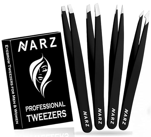 NARZ 4Pcs Professional Tweezers for Women Facial Hair Stainless Steel Precision Tweezers for Ingrown Hair Eyebrow